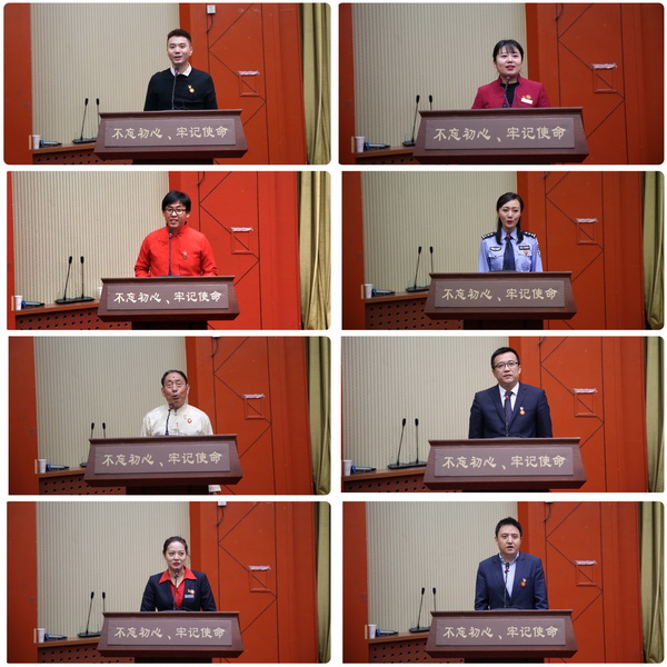 报告会在庄严肃穆的国歌声中拉开帷幕。2016年度北京榜样张博研、北京瑞蚨祥绸布店有限责任公司店员袁莹、门头沟区区委党校干部张董、北京市公安局顺义分局民警刘巍、通州区台湖镇次渠社区居民魏文启、北京朝阳医院医生王洋、香山公园讲解员贾莉、北京北斗星通导航技术股份有限公司职员潘凯逐一上台宣讲。这些榜样源于基层、胸怀祖国,根植平凡、创造不凡,用行动弘扬了社会主义核心价值观,用奋斗和奉献诠释了中国精神、中国力量,充分体现了习近平新时代中国特色社会主义思想在京华大地上的生动实践,是“不忘初心、牢记使命”主题教育最生动的教材,为我校师生上了一堂感人至深、催人奋进的主题教育课。
