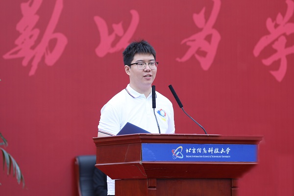 来自仪器科学与光电工程学院的单林林作为研究生新生代表发言。他表示,作为研究生,要潜心学问、敢于坚守,涵养德性、立德修身,立志奋斗、献身国家。他号召全体研究生在为学之道上勤恳踏实,为科技强国,为实现中华民族伟大复兴贡献青年一代的磅礴力量!