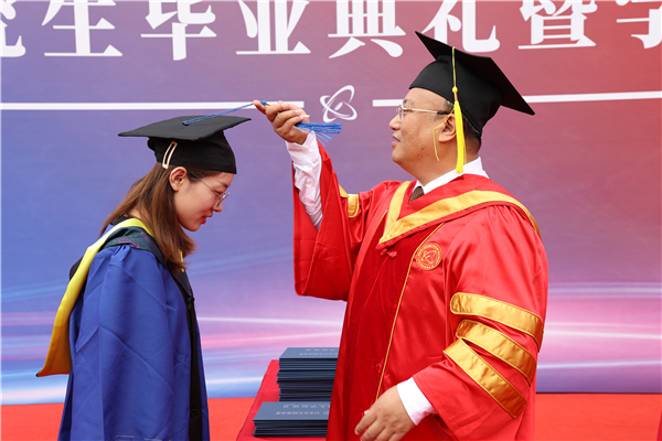 毕业典礼结束后,举行了学位授予仪式,校领导班子成员向获得硕士学位的2021届研究生和2020届研究生代表授予学位。