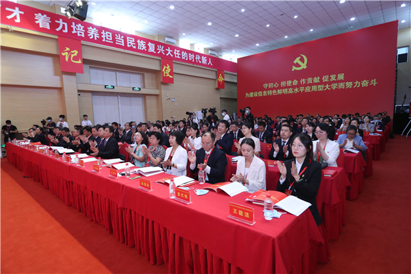 中国共产党北京信息科技大学第三次党员代表大会是在中国共产党百年华诞的重大时刻和“两个一百年”历史交汇的关键节点,在中国特色社会主义进入新时代、建设教育强国开启新征程、我校加快建设信息特色鲜明高水平大学的关键时期召开的一次重要会议。大会的主题是:高举中国特色社会主义伟大旗帜,以习近平新时代中国特色社会主义思想为指导,增强“四个意识”,坚定“四个自信”,做到“两个维护”,立足新发展阶段,贯彻新发展理念,融入新发展格局,以政治建设为统领,以“双一流”为牵引,坚持“建最好的大学、做最好的自己”的发展共识,坚守走内涵、特色、差异化发展道路,坚定推进“五个环境建设”提质增效,守初心,担使命,奋进新时代,阔步新征程,落实应用型大学办学要求,为建设信息特色鲜明的高水平大学而努力奋斗!