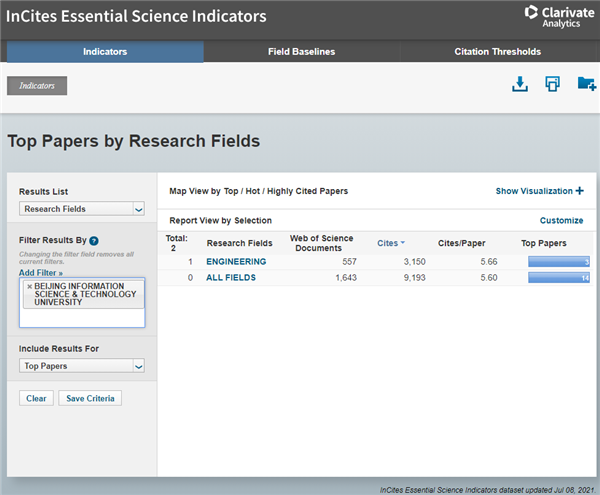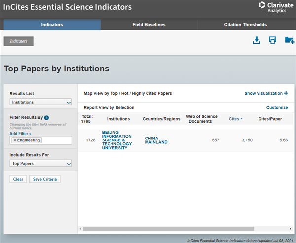 新突破!北京信息科技大学工程学科进入ESI全球排名前1%