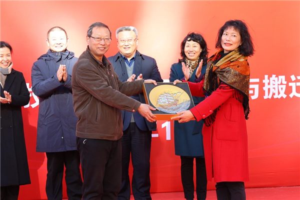 栾忠权代表新校区建设与搬迁指挥部向马克思主义学院赠送入住新校区纪念品。