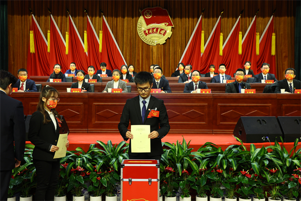 王传亮代表学校党委对大会的召开表示祝贺。他在讲话中指出,第一届团代会召开以来,北京信息科技大学共青团组织不忘初心,牢记使命,锐意改革,是学校党委的得力政治助手,是全校团员青年的可靠组织支柱,是学校与青年学生联系沟通的牢固桥梁纽带。王传亮指出,当前,我国正处于“两个一百年”奋斗目标的交汇点和学校“十四五”起步发展的新起点上,共青团要认识到当前学校工作面临的时代挑战和需要承担的时代使命,团结带领全校团员青年在实现中华民族伟大复兴中国梦的进程中不断开拓创新、奋发有为。王传亮对全校各级团组织、全体团干部和广大团员青年提出三点希望:各级团组织要坚持以政治建设为统领、聚焦主责主业;全体团干部要提高政治站位、坚守初心使命;广大团员青年要坚定理想信念、勇担青春使命。他强调,全体团干部要将个人的成长和党的事业、和学校的发展结合在一起,不弃微末、不舍寸功,一步一个脚印地成长为党的事业发展的中流砥柱。他希望各位代表要把握好学校事业发展的大局,以饱满的政治热情和严肃负责的态度,认真履行职责,积极主动地参与到学校治理体系中来。他勉励广大团员青年要以此次团代会为新的起点,与祖国共奋进,与时代同步伐,与学校齐发展,为把我校建设成为信息特色鲜明的高水平大学而努力奋斗!
