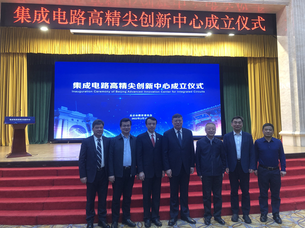 成立仪式由中国科学院院士、北京大学副校长张平文主持,市教委主任刘宇辉,北京大学校长郝平,中国科学院院士、清华大学校长邱勇,中国科学院院士、北京大学教授、集成电路高精尖创新中心主任、东南大学校长黄如,中国工程院院士、清华大学教授、集成电路高精尖创新中心主任、华中科技大学校长尤政,北京市科委、中关村管委会二级巡视员刘航共同为中心揭牌。
