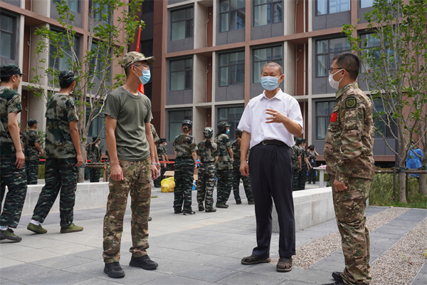 周志成前往训练场地、核酸检测点位、军训团部检查指导军训及学生疫情防控工作。他强调,做好疫情防控是确保军训平稳顺利进行的首要前提,军训团要高度重视,严格按照北京市和学校疫情防控要求,守牢疫情防控底线;要坚持立德树人根本任务,切实推进五育并举,让广大学生在军训这堂大思政课中提高政治觉悟,激发爱国热情,在强健体魄和精神补钙上齐头并进,让学生受益终身;同时,要做好特色科目训练安排,规范施训、科学施训、有序施训,不断提高军训质量。