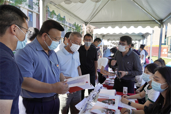 学校领导到各校区报到现场慰问工作人员和2022级新生。