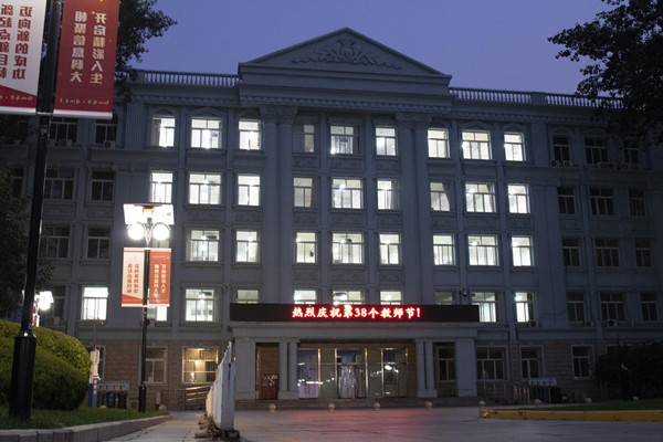 小营、清河和健翔桥三个校区电子屏幕同步显示“迎接党的二十大,培根铸魂育新人”“老师您好!教师节快乐”“老师,您辛苦了!”等祝福语,以亮灯的形式向全校广大教职员工致以节日问候和崇高敬意。(供稿:党委宣传部 苗剑飞 图片:学生融媒体工作室 王华强 钟欣也 编辑:张帆 审核:杨静)