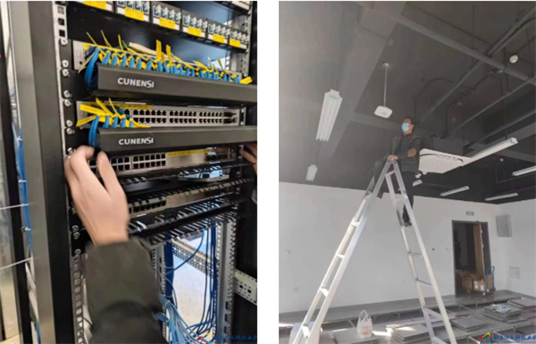 信息网络中心假期抢工实施新校区校园网建设、多媒体教室建设项目,全力保障春季开学信息楼、立德楼等楼宇线下教学和办公需求。