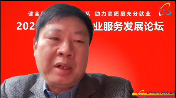 人力资源社会保障部就业促进司一级巡视员尹建堃代表人力资源社会保障部就业促进司对论坛的举行表示祝贺。他指出,北京信息科技大学中国公共就业服务研究中心紧密围绕人力资源社会保障部的决策需求,始终发挥着智囊团和思想库的作用,产生了一批批重要的研究成果,在助力提升公共就业的效率和效能方面发挥了积极作用。他期待中国公共就业服务研究中心在新形势、新要求下为就业服务技术、基层就业指导贡献更多的智慧。