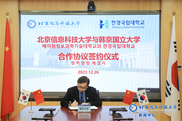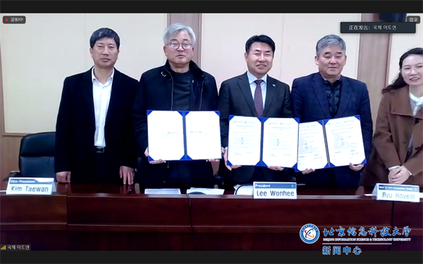 12月26日上午,校党委副书记、校长郭福在沙河校区立德楼530会议室以视频形式会见了韩国韩京国立大学校长李元熙、副校长金泰完,并签署两校合作协议。