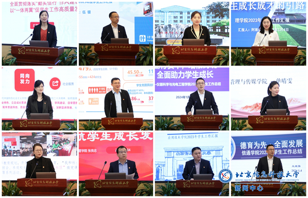 学生工作总结交流会是集中展示学校学生工作思路、方法、成效,促进学院、部门之间交流学习、提升学工干部互鉴互学的重要平台,通过总结交流,达到以考核促进步、以交流促提升的目的。2024年,学工队伍将在学校党委坚强领导下,坚持“外树形象、内聚力量、服务师生、加快发展”的要求,在勤勉实干中践行让“学生舒心、家长放心、社会暖心”的承诺,在拼搏进取中努力做到“优作风、提能力、促发展、创一流”,为培养全面发展的时代新人贡献力量。