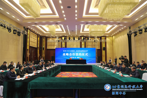 仪式上,解江凌致辞。他代表学校对张家口市委市政府前期的积极对接、主动作为表示感谢。他表示,张家口市抢抓京津冀协同发展重大机遇,推动城市建设内涵式提升转变,特别是在大数据领域聚力深耕,与北京信息科技大学的学科专业优势高度契合。近年来,北京信息科技大学精准对接国家与首都创新驱动发展战略,服务京津冀协同发展及北京市高精尖产业发展需求,以创新求突破,以服务促发展,各项事业蓬勃发展。协议的签订,是校地聚力共谋发展、携手共赴未来的崭新起点,也是学校探索实践北京市属高校助力环京地区经济社会发展、深度服务京津冀一体化建设国家战略的实际行动,期待双方围绕人才培养、科研项目攻关、科技创新中心构建、校地协同育人共同体和校地干部能力提升平台建设等方面,聚合资源、融通共享,构建全方位、深层次、多领域的命运共同体,以更强劲的合作效能促成更高质的合作成果,为共同深入推进京津冀协同发展交出高质量答卷。