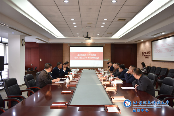 在中国人民大学苏州校区,中国人民大学苏州校区管委会副主任、中法学院院长王小虎,中国人民大学苏州校区党委书记伍聪热情接待了解江凌一行。王小虎对解江凌一行的来访表示热烈欢迎,伍聪详细介绍了中国人民大学苏州校区的发展现状、办学定位,以及在管理模式、师资建设等方面的经验做法。解江凌介绍了学校的办学历史和办学特色以及在环京地区布局首都优质高等教育资源,积极探索实践北京市属高校助力环京地区经济社会发展的思考。他表示,作为人大校友,此次来到苏州校区倍感亲切,特别是看到苏州校区的建设成就,感到十分骄傲自豪。苏州校区的建设经验对北京信息科技大学张家口校区的筹建具有重要的借鉴意义,学校将充分汲取经验、发挥特色优势,优化资源调配,建设好张家口校区。