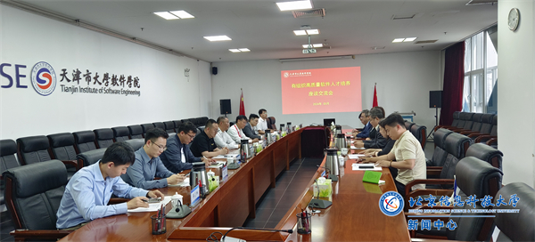 会后,解江凌带队赴天津市大学软件学院调研交流。天津市大学软件学院党委书记张爱华、副校长刘军利热情接待了解江凌一行。座谈中,解江凌介绍了我校的办学历史、优势特色、学科专业以及近年来学校的建设发展成就。他对天津市大学软件学院14年至诚致力、追求卓越取得优异成绩表示赞许。他表示,两校在软件人才培养方面有广阔的合作空间,希望双方本着共商、共赢、创新、务实的理念,精心谋划、精准落地,形成人才培养合力,为京津冀地区软件产业的人才培养与供给作出贡献。