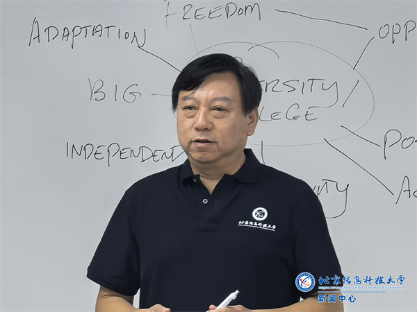 在勤学班,郭福以关键词的形式引导同学们畅谈对大学的憧憬和看法。同学们踊跃表达自己的观点,师生们在愉快互动与思维碰撞中形成了勤学2401班“大学关键词”的思维导图。郭福寄语全体新生,要坚定理想信念,胸怀远大理想,将个人发展与党和国家需要紧密联系在一起,不仅要努力服务社会、服务国家,还要放眼世界、服务世界。郭福还勉励同学们,要不断提升国际视野,培养批判性思维,敢于表达自己的深层次想法;要培养自己良好的品德修养、学术诚信意识,保持对学习的好奇心与探索欲,做到事事有回应,努力成为在各方面都能够体现出“专业”素养的新时代大学生。郭福还围绕大学的日常课堂、学习习惯、成长建议等方面,对班级同学提出了具体指导。