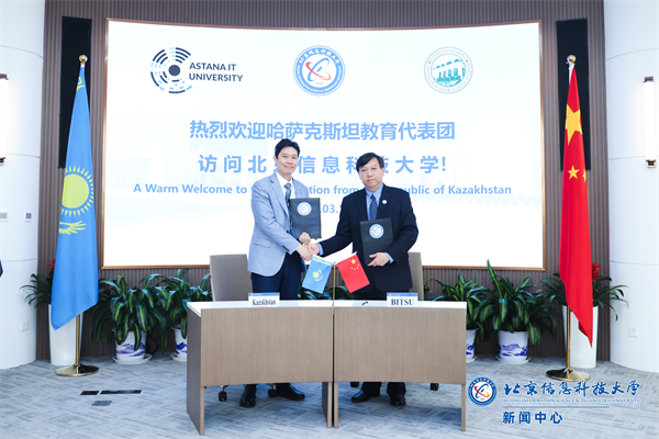 郭福代表学校向哈萨克斯坦教育代表团来访表示热烈欢迎,并从办学特色、学科专业设置、优势科研领域、校区功能布局、人才培养以及毕业生就业等方面简要介绍了学校的基本情况。郭福强调,学校始终秉持“把信息科大带到世界,把世界带到信息科大”的工作理念,坚持开放办学,持续扩大全球朋友圈,精心打造“留学信息科大”品牌,已与全球28个国家和地区的120余所高校建立友好合作关系。郭福指出,哈萨克斯坦是我校来华留学生的主要生源国之一,在校期间,他们勤奋好学、积极融入,成为中哈文化交流的桥梁,也为自身成长开拓了广阔空间。郭福表示,哈萨克斯坦是共建“一带一路”倡议的首倡之地,中哈两国以永久全面战略伙伴关系树立了互利共赢的典范,期待以本次签约为新起点,在师生互访、联合科研、合作办学等领域深化多模式探索,共绘两国教育合作新蓝图,为“一带一路”高质量发展贡献智慧与力量。