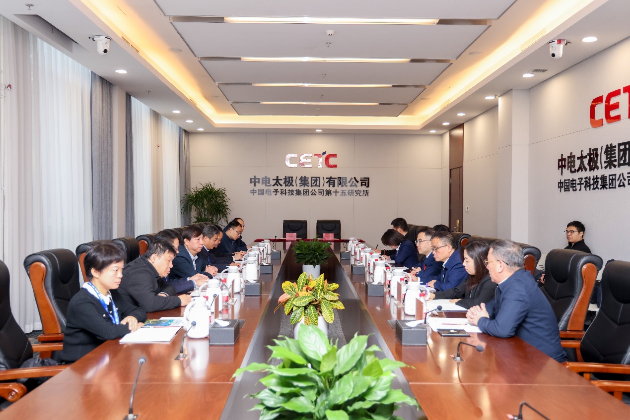 中电太极(集团)办公室副主任程文渊、产业部副主任贾德琳,大数据国家工程研究中心行政人事中心总经理韦佳、北京分公司副总经理(主持工作)胡海洋(我校2012级工商管理专业校友),我校党校办、科技处、产融办、外联办、计算机学院、管理学院等相关部门和学院负责人参加活动。(供稿:外联办 汤洪滔 图片:宣传部 刘涧 编辑:郭辉 审核:吕丽峰)
