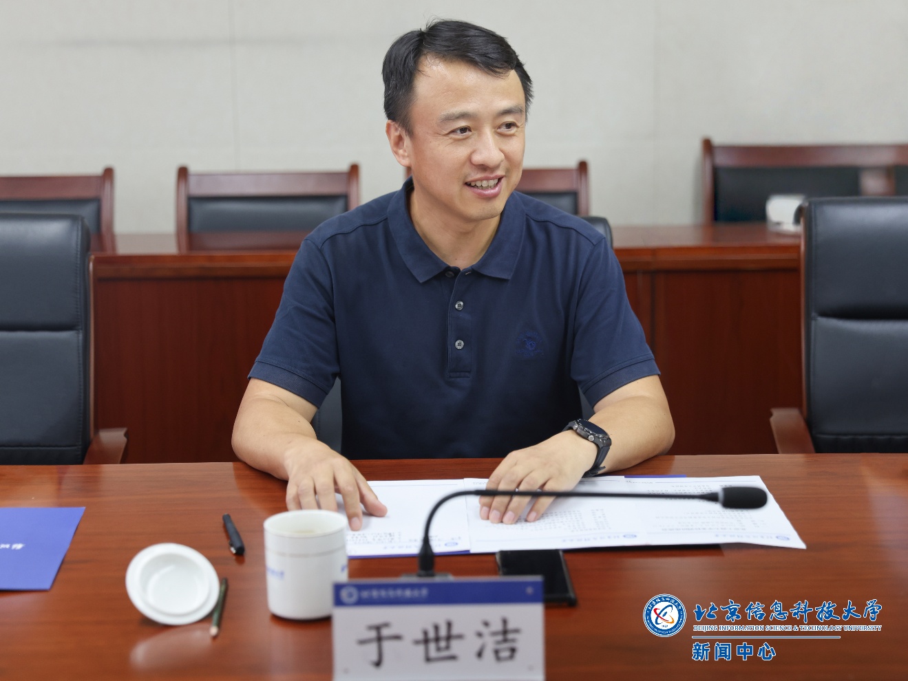 在专题党课结束后,于世洁向与会党员通报了学校的近期发展情况。他简明扼要地介绍了学校在2024年取得的成绩,以及2025年的整体规划布局,并详细通报了几件重大事项的进展情况,包括成功承办“青创北京”2025年“挑战杯”首都大学生课外学术科技作品竞赛、成功举办首都高等学校第63届学生田径运动会,以及获批设立北京信息科技大学伊利诺伊工程学院等喜事。